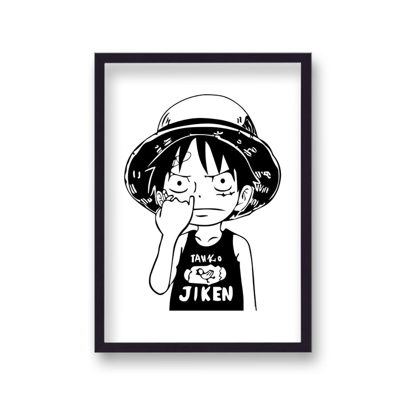 One Piece Black on White Luffy Picking Nose Poster Print